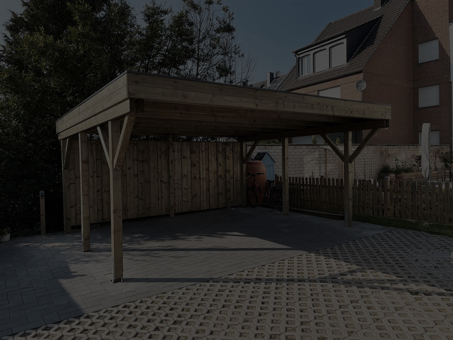 Der Anbaucarport ist ideal für schmale Grundstückszufahrten oder direkte Hauszugänge. Da nur eine Stützreihe benötigt wird, bleibt das Ein- und Ausfahren besonders unkompliziert. Auch für große Fahrzeuge wie Kombis oder SUVs bietet die Konstruktion ausreichend Raum. Zusätzlich lassen sich Mülltonnen, E-Bikes oder kleinere Geräte unterbringen, ohne die Bewegungsfreiheit einzuschränken. Dadurch bleibt der gesamte Bereich rund um das Haus aufgeräumt und praktisch nutzbar.