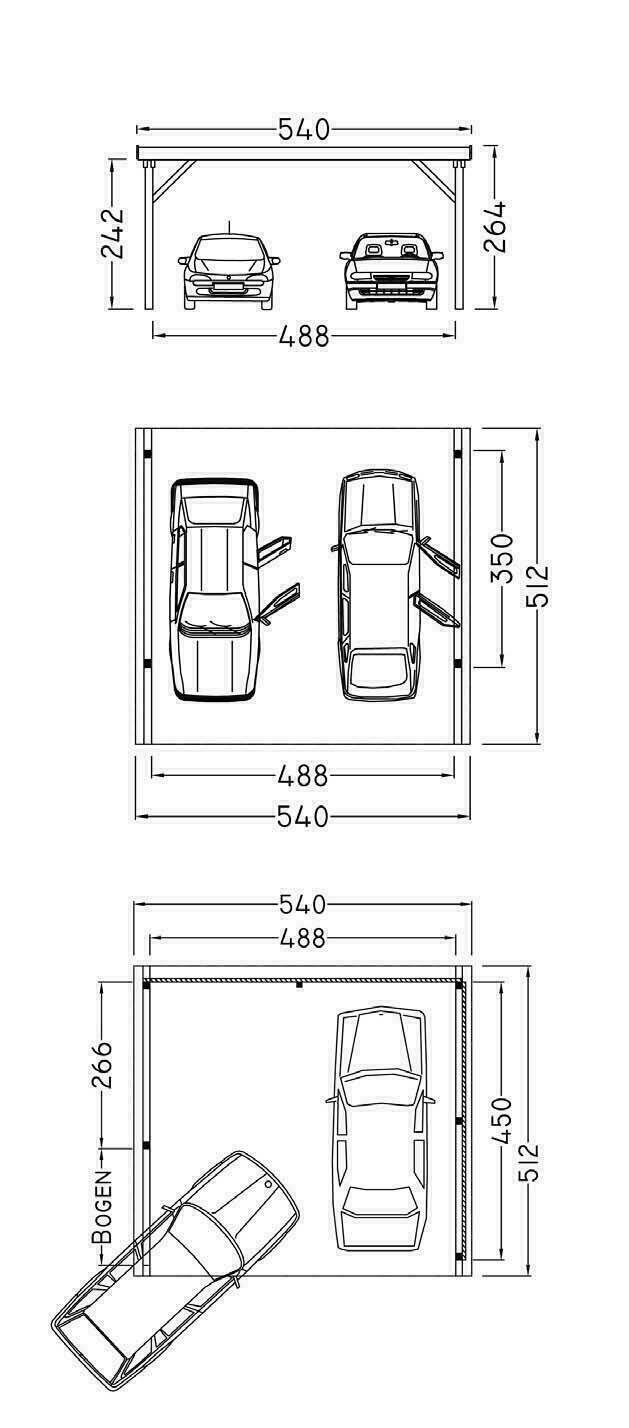 Der Carportbausatz besteht aus 4 Stück Pfosten 12 x 12 cm, Zangen, Pfetten, H-Anker zum Einbetonieren und Schraubenset sind inklusive.