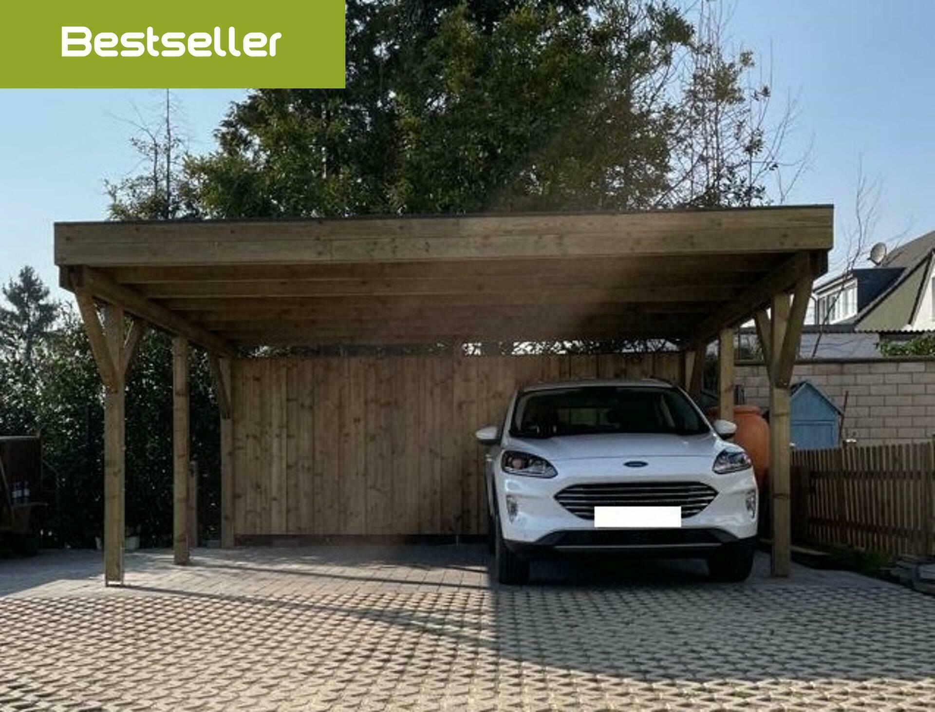 Die massiven Holzkomponenten sind so verarbeitet, dass sie über viele Jahre hinweg stabil und zuverlässig bleiben. Durch hochwertige Oberflächenbehandlung, präzise Ausführung und sorgfältige Materialwahl entsteht ein Carport, der wenig Pflege benötigt und dennoch dauerhaft ansprechend aussieht. Die robuste Konstruktion sorgt dafür, dass Belastungen wie Schnee, Wind oder regelmäßige Nutzung ohne Probleme ausgeglichen werden. Dadurch bleibt der Doppelcarport langfristig ein verlässlicher Bestandteil des Grundstücks – funktional, visuell klar und dauerhaft wertbeständig.