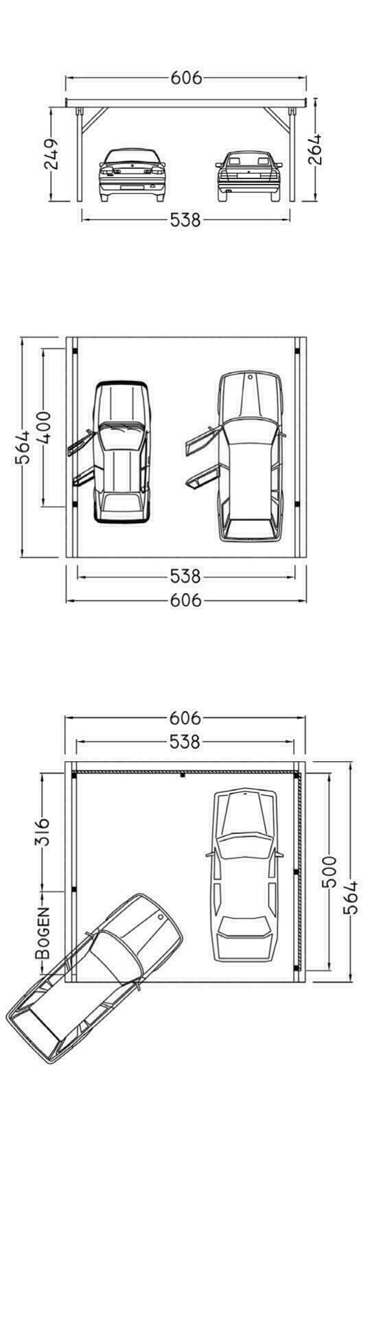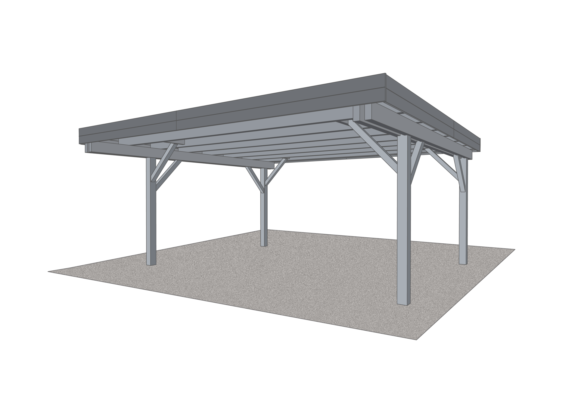 Hochwertiges Leimholz Doppelcarport Model Singapur mit einer Standard-Schneelast von 200 kg/m². Die Pfosten sind 14 x 14 cm stark.